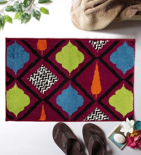 Indulge your bath space with upscale exuberance as you introduce the Blush Assorted Geometry Bathmat from the house of India Circus. Our bathroom rugs are large and are a worthy piece to own in your home decor. The design on this designer bathmat features a colourful latticed framework along with conifer and chevron motifs in a blush background. It also witnesses geometrical patterns all over the design. Browse & shop from our range of bathroom mats online today.