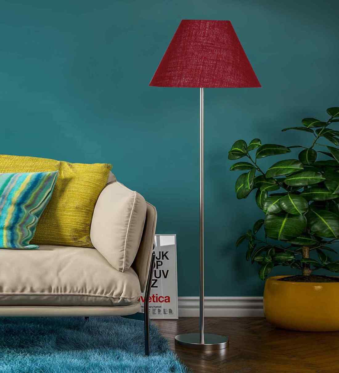 Maroon Jute Conical Shade Steel Floor Lamp Steel Base