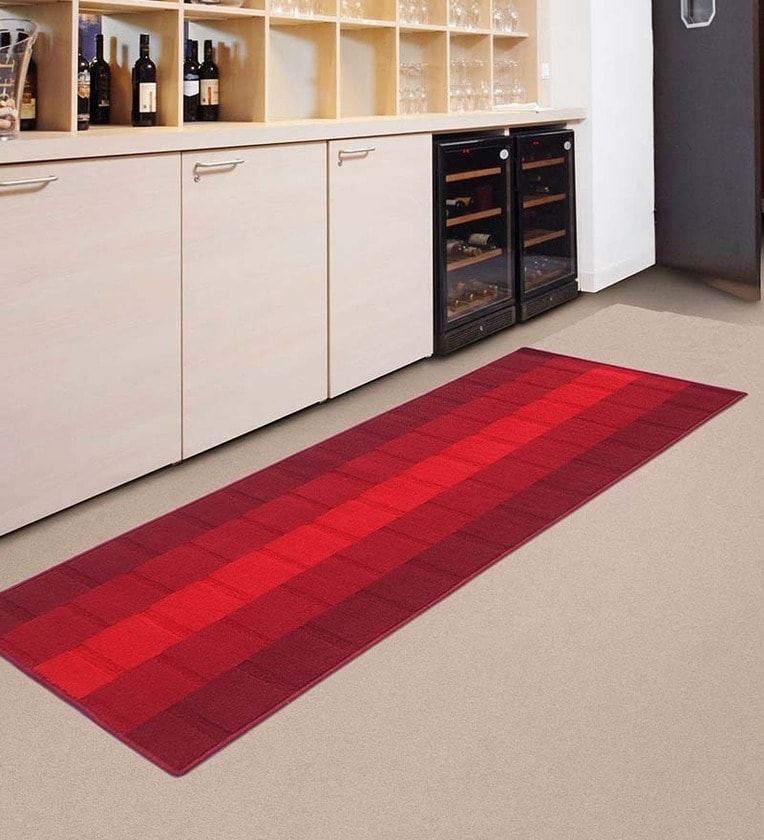 Maroon Nylon 22 x 55 Inches Machine Made Floor Runner