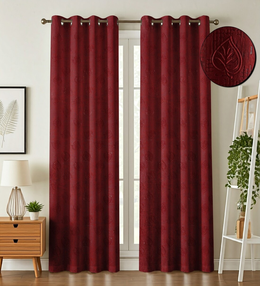 Maroon Poleyster Floral 9 Feet Semi Transperency Ring Top Long Door Curtains 2Pcs