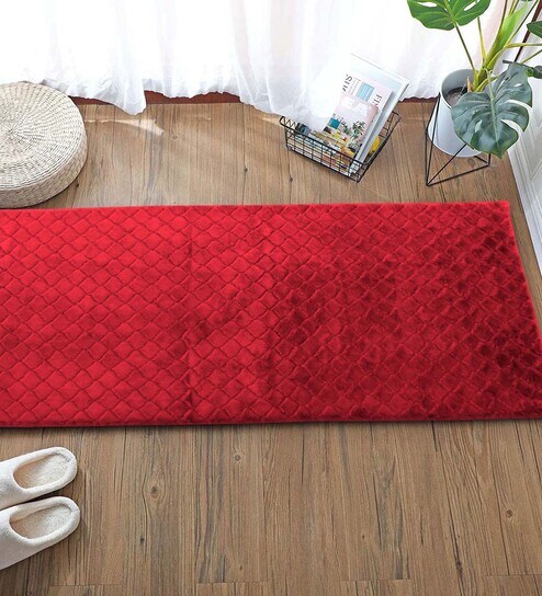 Maroon Polyester 24 x 60 Inches Machine Made Floor Runner