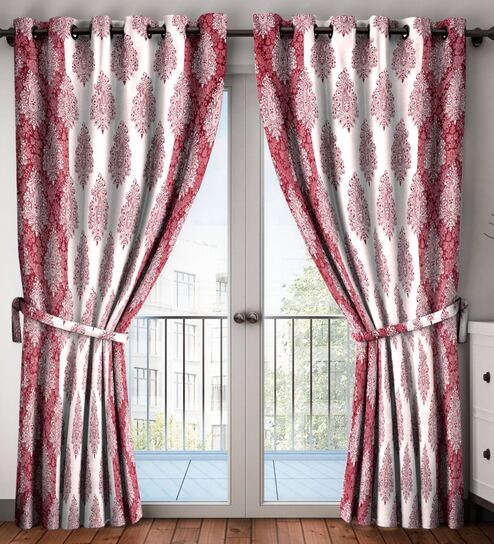 Maroon Traditional Polyester 7 Ft Semisheer Eyelet Door Curtains (Set of 2)