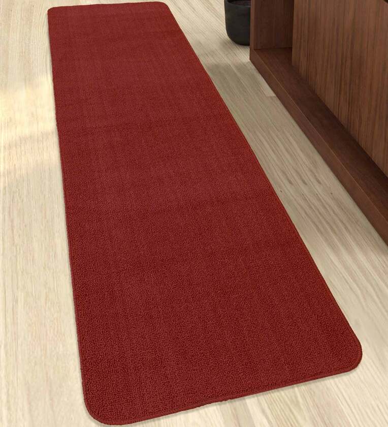 Maroon Polypropylene 79 x 24 Inches Machine Made Floor Runner