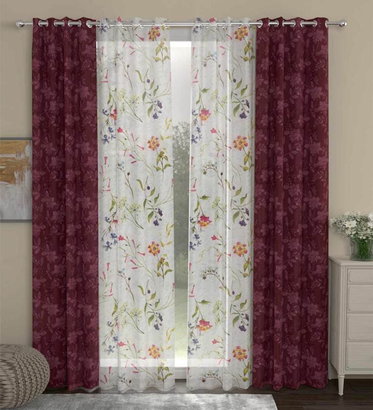 Maroon Semisheer Polyester 7 Feet Eyelet Set of 4 Curtains