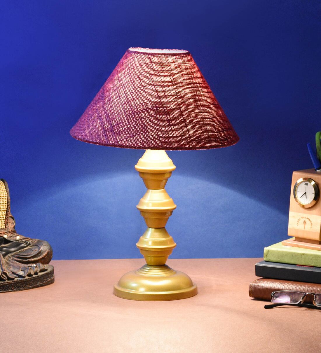Maroon Shade Table Lamp With Metal Base