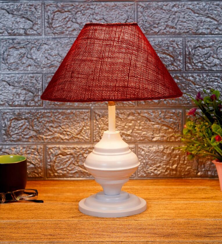 Maroon Shade Table Lamp With Metal Base