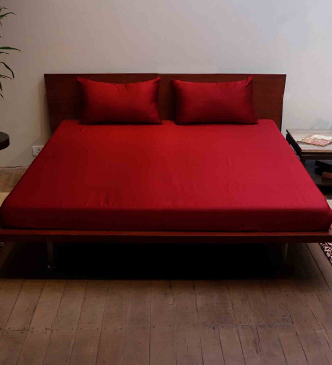 Maroon Solid 300 TC Cotton Queen Sized Bed Sheets with 2 Pillow Covers