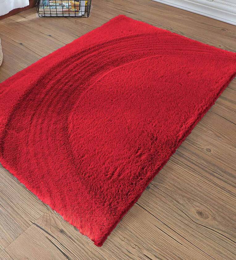 Maroon Solid Polyester 36x24 Inches AntiSkid Bath Mat