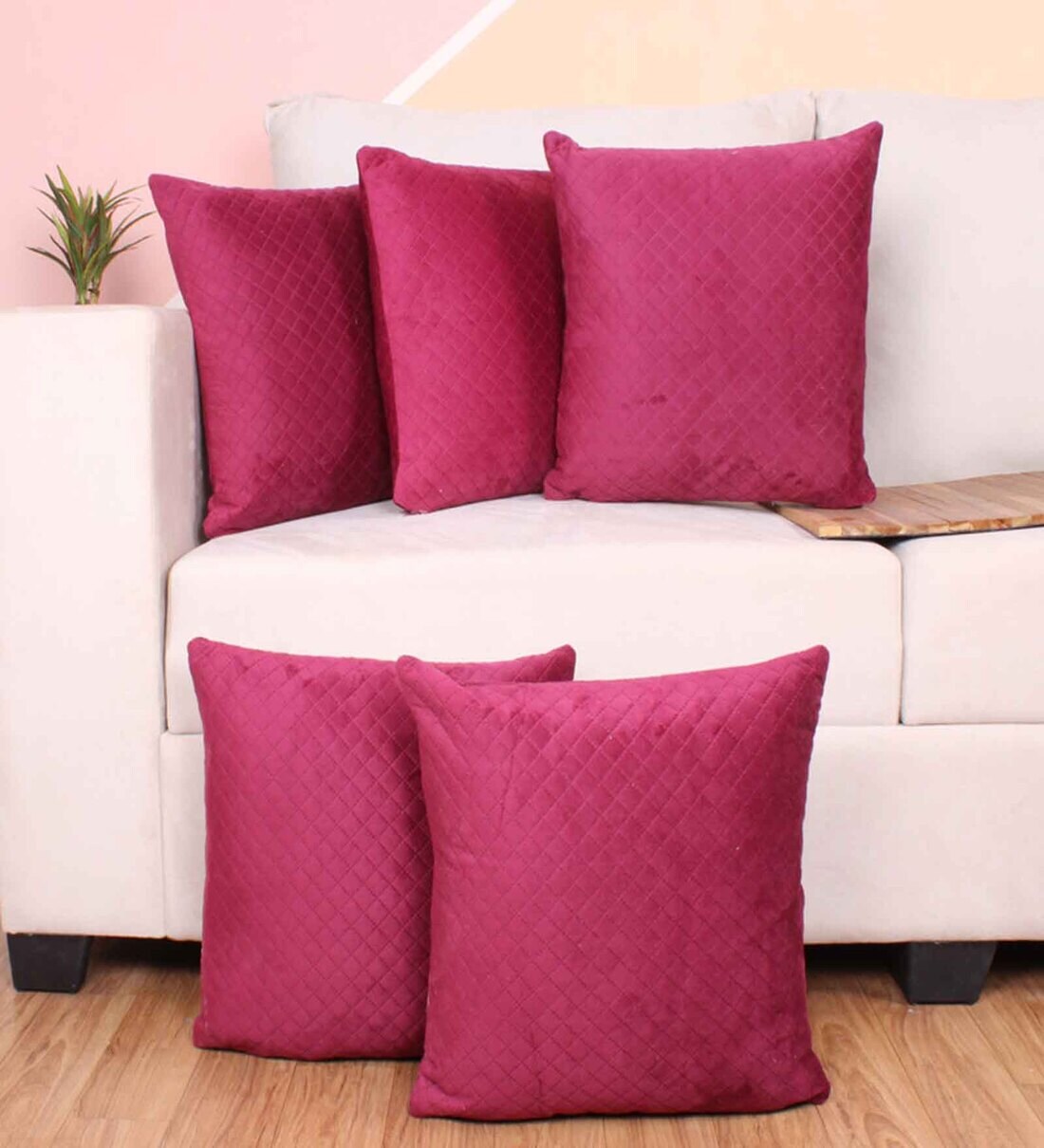 Maroon Velvet Solid 16x16 inches Cushion Covers (Pack of 5)