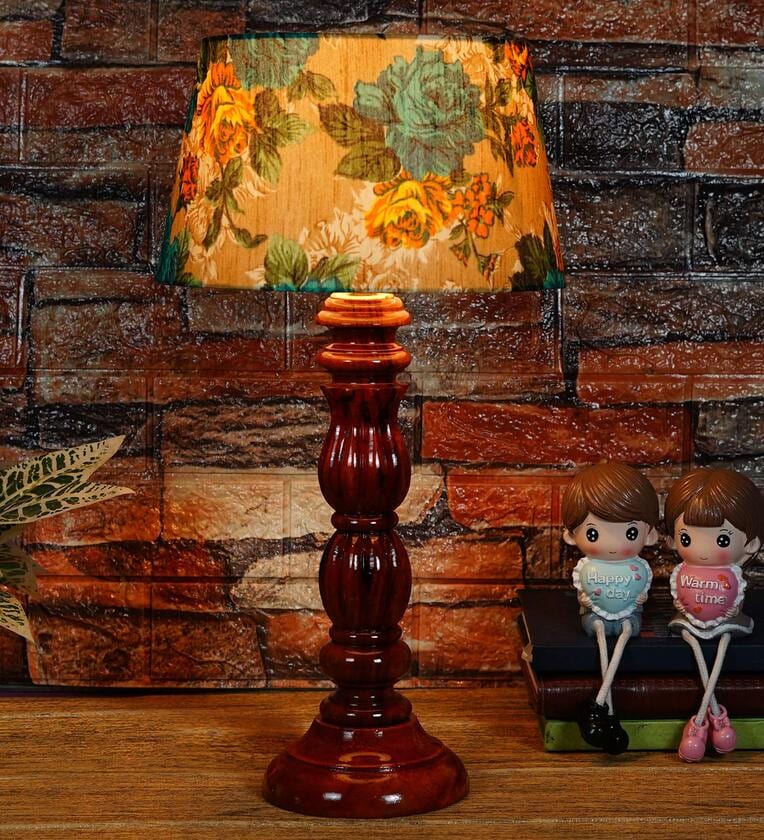 Marsden Yellow & Green Fabric Shade Night Lamp With Wood Base