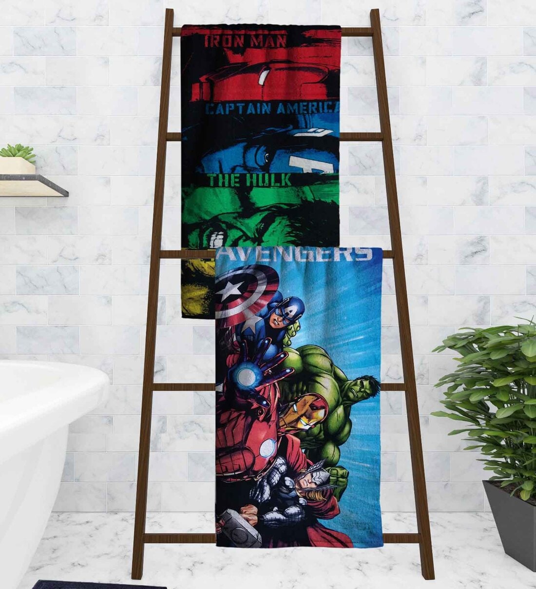 Marvel Avengers Team Kids Multicolor 350 GSM Cotton Towels (Set Of 2)