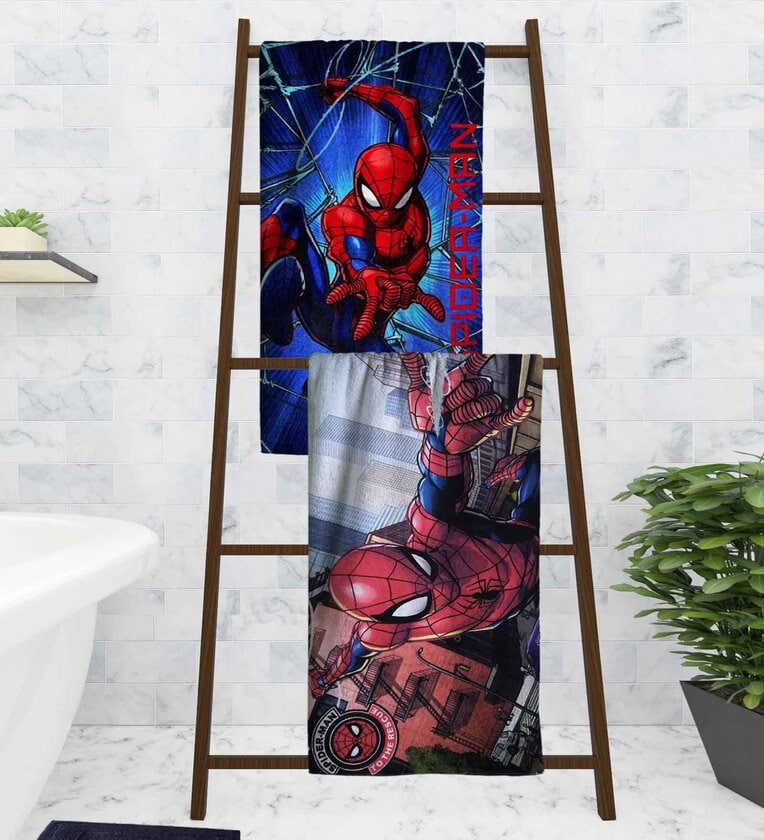 Marvel Spiderman Multicolor 350 GSM Cotton Kids Towels (Set Of 2)