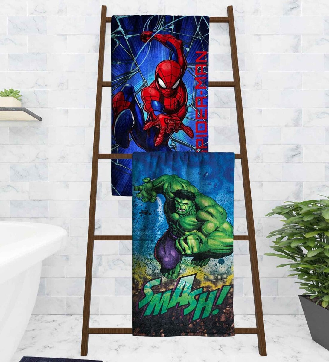 Marvel Hulk & Spiderman Kids Multicolor 350 GSM Cotton Towels (Set Of 2)