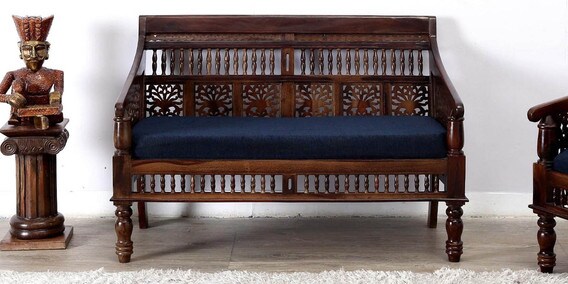 Maurya Solid Wood 2 Seater Sofa in Provincial Teak Finish