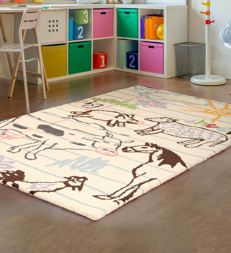 The Carpet is hand woven by means of the technique- Handtufted. It is made by punching strands of wool into a canvas that is stretched on a frame with the help of a hand-operated tool