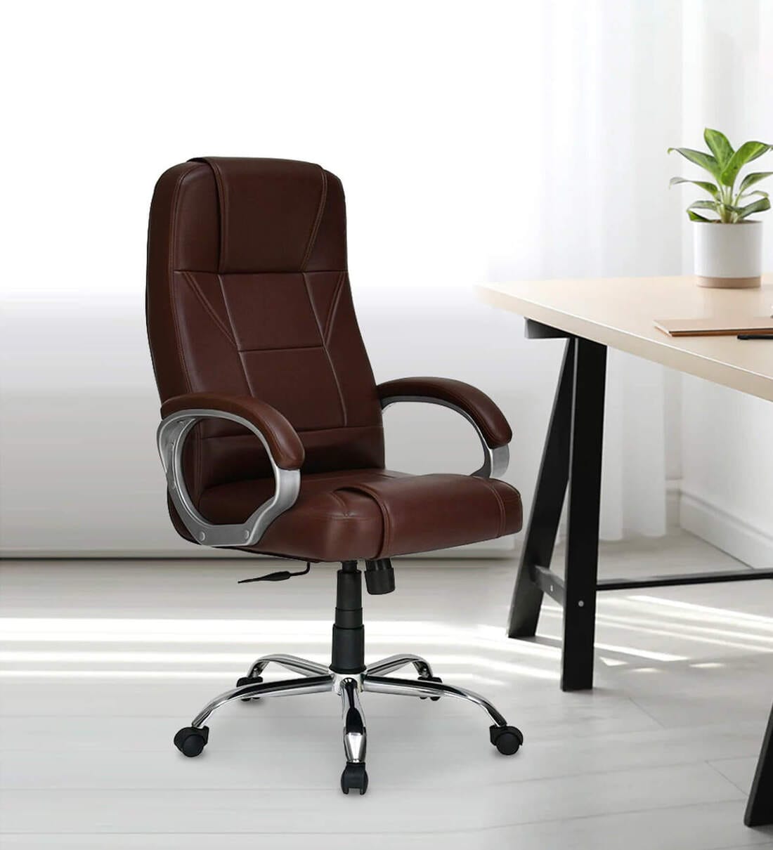 Mega leatherette Executive Office Chair in Brown Finish
