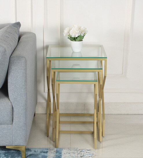Nest of Tables are a set of small tables graduated in size so that they fit one beneath another. Generally, they come in sets of three. Each table is slightly smaller than the other, which allows them to be slid beneath each other.