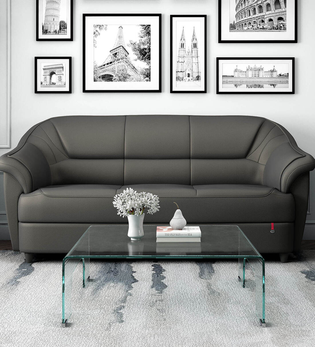 Tabletop features 12 mm thick clear glass in a rectangular shape.