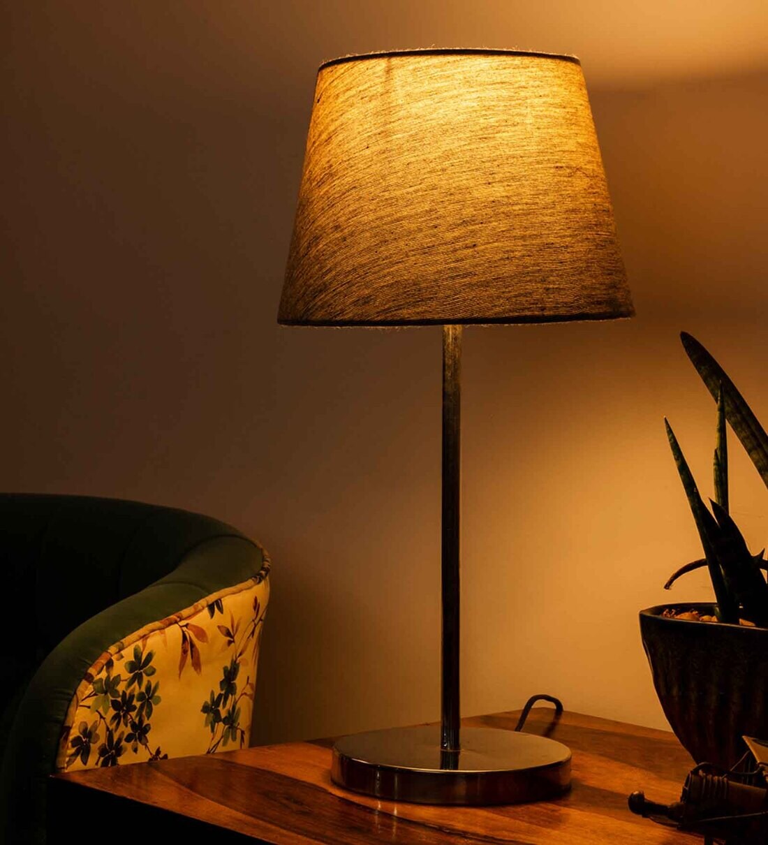 Feature- Metal Chrome Finish Lamp with Samre Cotton Lamp Shade: Enhances living space ambiance.Crafted with care for sleek and modern look.