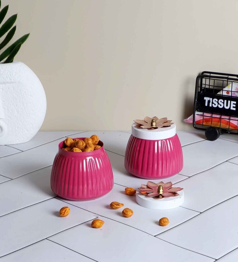 A Metal Pink Jar Set of 2 is Perfect to serve Your Guest , It can be Gifted to your Loved Ones