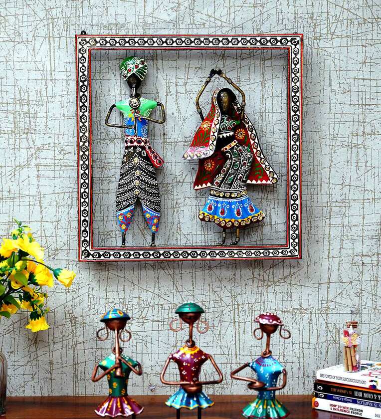 Metallic Dancer Couple Wall Hanging Frame In Yellow