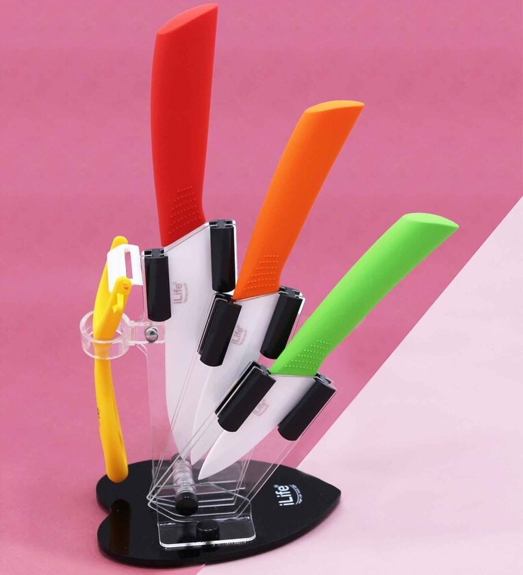 Metallic Multicolour Ceramic (Set of 5) Kitchen Knife Set