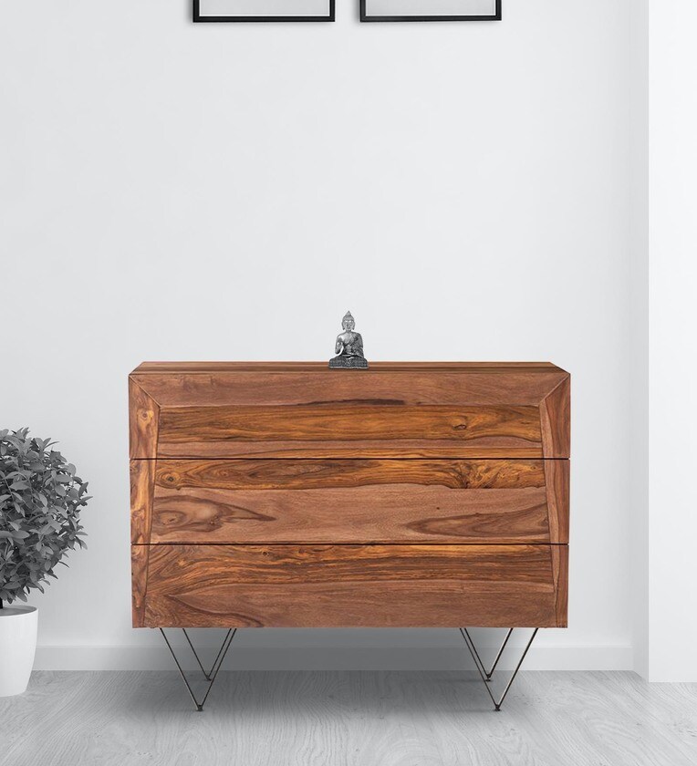 Metric Sheesham Wood Chest of Drawers in Autumn Brown Finish