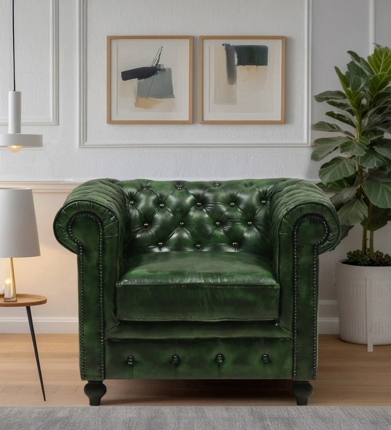 Miceli Leather 1 Seater Sofa In Olive Green Finish