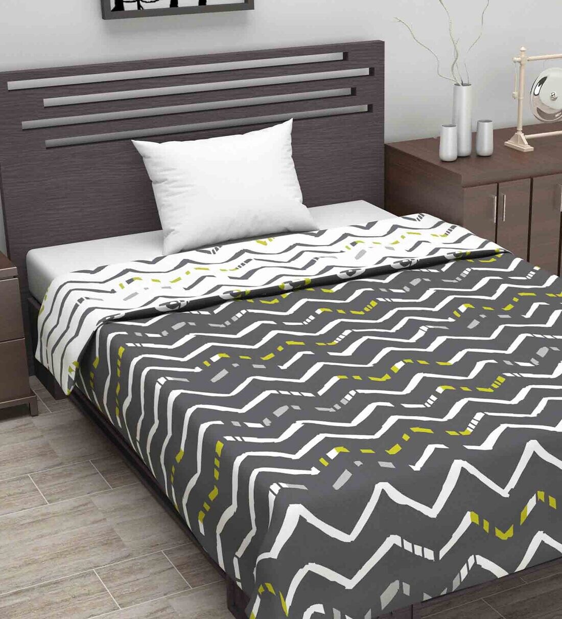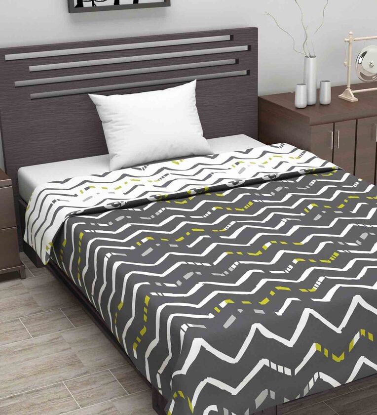Divine Casa Microfiber 120 GSM Geometric Print Grey and White Single Bed AC Dohar Quilt Blanket