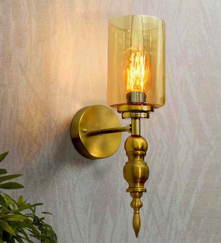 Bring timeless charm to your home with this vintage wall lamp for living room and bedroom d cor. Featuring an elegant amber glass wall light shade and classic brass metal finish, this decorative wall light adds a warm and cosy glow to any space. Perfect as a wall sconce light for hallways, dining areas, or bedside walls, Standing at 36.8 cm in height, this sophisticated fixture features ornate detailing with beautifully crafted metal components and a premium glass shade measuring 15.2 cm. it includes a standard E27 holder (bulb not included) for easy compatibility. Designed for durability and style, the ornate detailing and high-quality materials make it a top choice for modern and traditional home interiors. Ideal for those searching for amber glass wall lamp, brass wall lights for home d cor, or designer wall lights for living room.