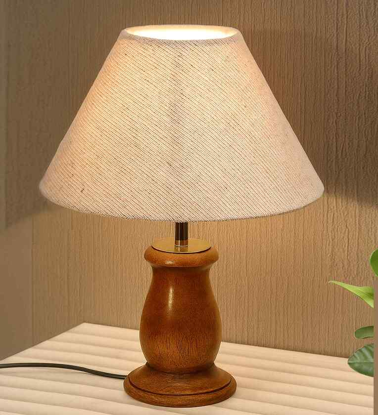Mid Century Single Table Lamp with Walnut Finish and Jute Cone Shade