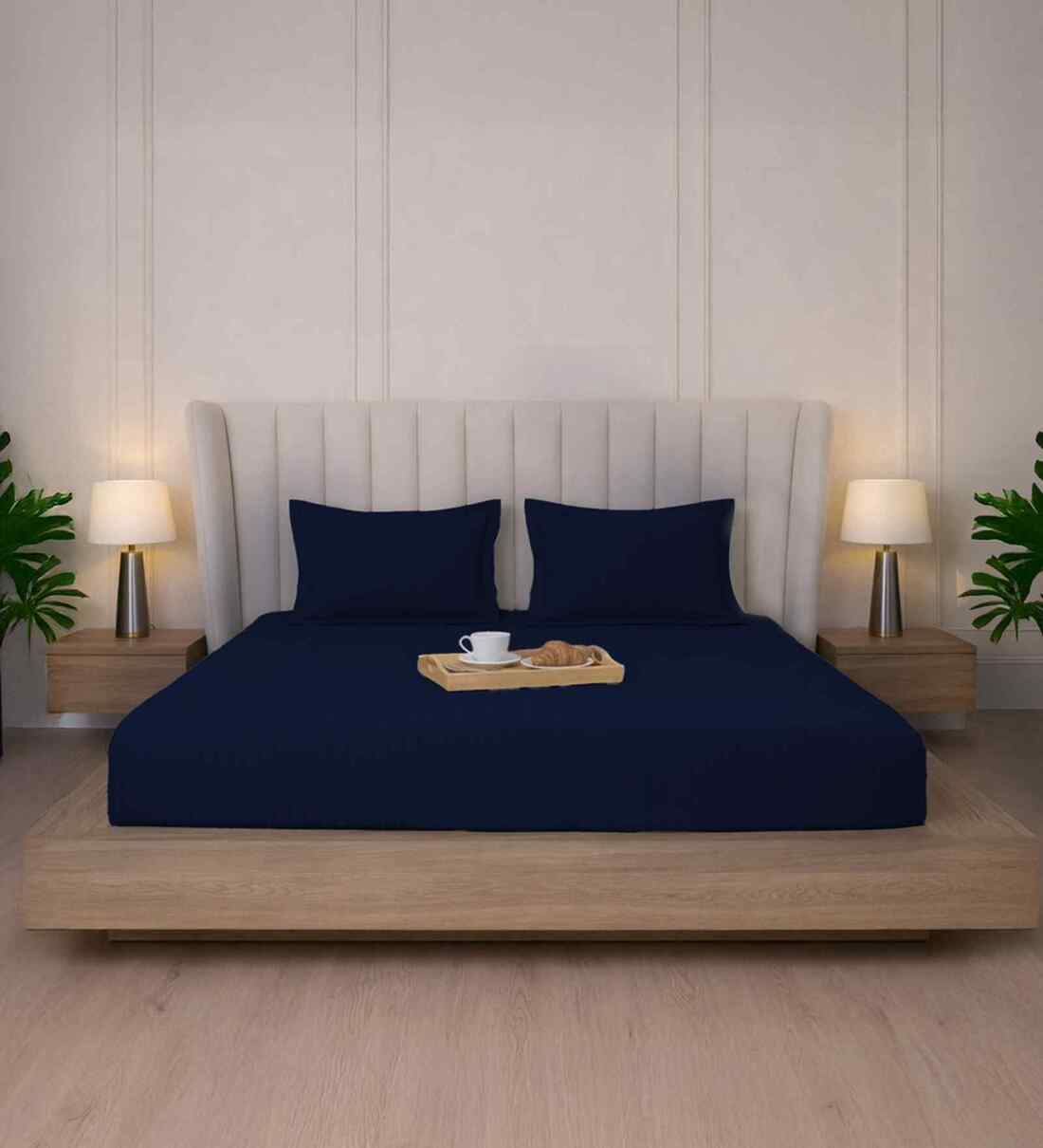 Midnight Navy Stripe 300 TC Pure Cotton King Fitted Bedsheet with 2 Pillow Covers