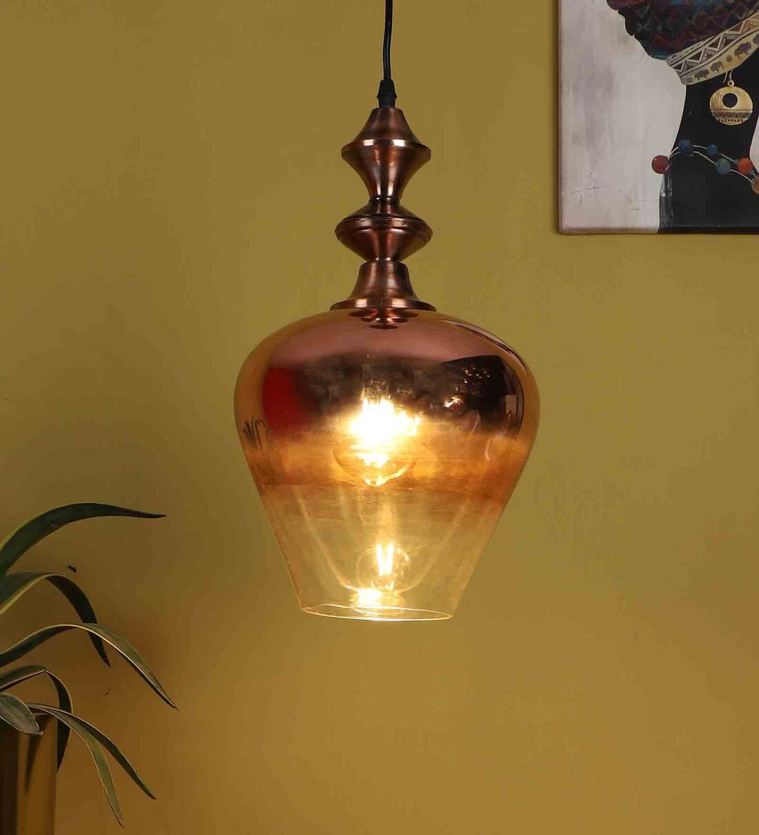 Introduce our Half Copper/Half Transparent Hanging Light, featuring a copper iron base & a unique copper glass shade that is half transparent & half copper color. The E27 holder allows for easy installation & compatibility with a variety of light bulbs. This light is perfect for adding a touch of elegance & sophistication to any room. The copper iron base provides a rustic feel, while the glass shade gives a contemporary look. The half transparent & half copper color of the shade allows light to diffuse gently & creates a unique & interesting visual effect. This light will be a perfect addition to any living room, dining room, or kitchen. The Half Copper/Half Transparent Hanging Light will be a stylish & functional addition to your home for years to come.