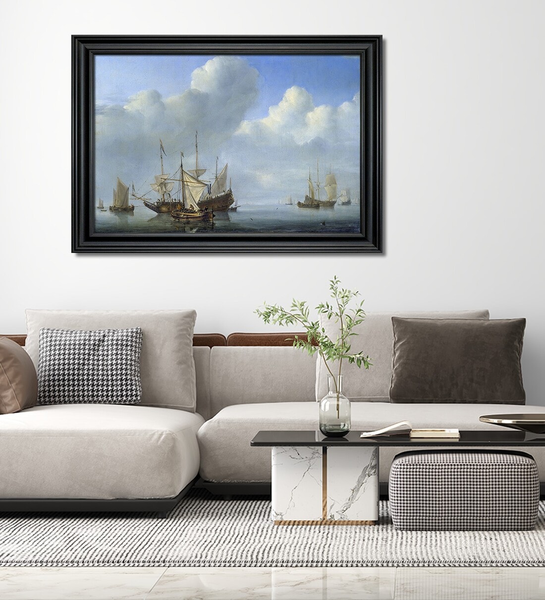 You are investing in a fully-assembled, ready-to-hang art frame with gallery-quality print on premium-quality canvas. We even provide screws for installation! Our framed wall painting art print is a perfect choice for Home, Office, Hotel and Restaurant Interior wall decor  living room, bedroom, kitchen, lounge, lobby, reception, workspace and more. ART PRINT: The Giclee is printed using the best fade-resistant, archival-quality inks with UV technology, ensuring your print will stay vivid and bright for years. While we strive for a high degree of image and colour accuracy, minor colour/hue differences may be visible (i.e. prints may be darker, lighter or muted). There may be a minor hue or tone difference between the printed image and how it may appear on your screen. This is because electronic devices and smart-gadget screens are manufactured to enhance colour, which cannot be replicated on print media. You may notice cracks or faded portions in the art prints (in patches or overall), which are part of the original preserved paintings. All image representations of Empyrean Art Gallery are printed as is and are as close to the original unedited version of the original art as possible to give you the most authentic piece. We do not alter the artwork in any way except in the printer settings to maintain colour accuracy. Please note: the images shown here are not to scale. MEDIA - CANVAS: Our canvas prints are made with only the highest quality looms to ensure you receive a product as close to the original painting as possible. A dense 250gsm cotton-polyester blended canvas has a more delicate mesh texture that helps highlight the original art's printed stroke details, as opposed to a popularly touted thicker 390gsm with deeper woven textures that drown out natural art strokes - thicker isn't always better. The cotton-polyester blend (popularly used for Giclee printing) maintains the longevity of the art print due to ink absorption by cotton and the robustness of colours on adhesion to the polyester surface. FRAME STRUCTURE: Every frame is customised and carefully assembled by skilled craftsmen who ensure quality, right down to the stretcher bars that reinforce it. Our giclee prints are stretched over a frame of seasoned pine wood stretcher bars - a construction that prevents warping or bending and will last for years.