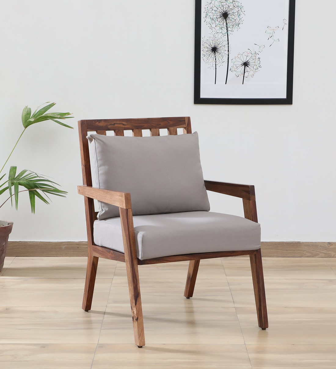Milton Sheesham Wood Arm Chair In Grey & Rustic Teak Finish