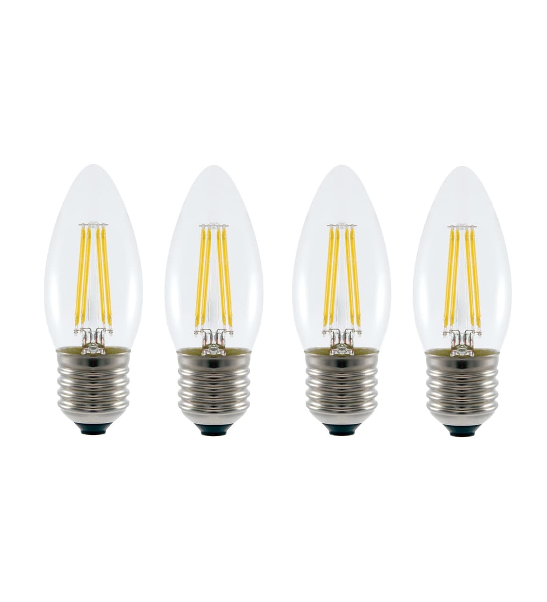Origin Glass LED Filament Bulb-6W-Candle Shape-E27 Base (Cool White) - Pack of 4