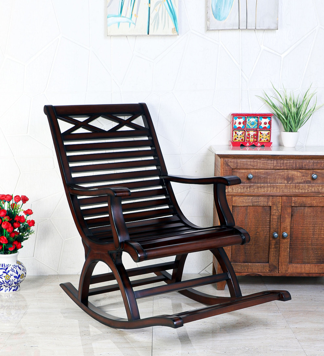 Mince Solid Wood Rocking Chair in Brown Finish