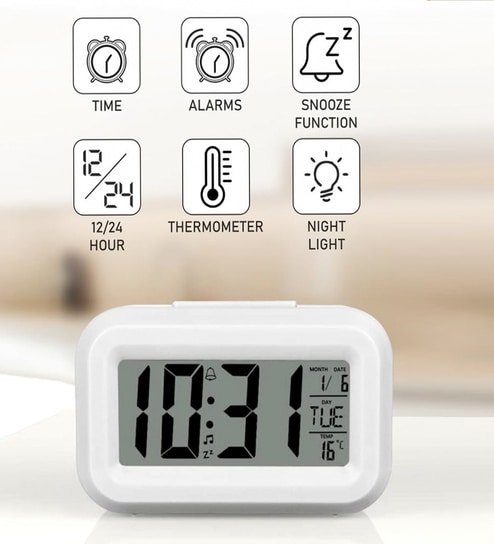 Backlight Night Light : Tap the top button to turn on the soft night light with snooze function. Multificational : Includes time, alarm, calendar, and temperature display. Clear LED Screen : Provides easy-to-read digital display. Temperature Display : Shows C/F with easy conversion.