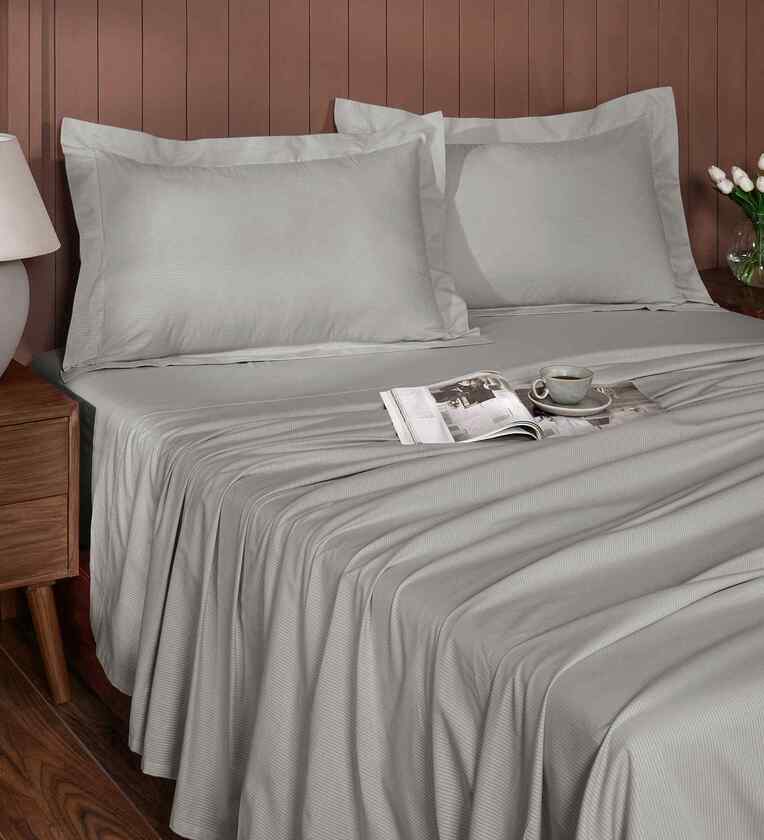 The natural color palette of these Dobby Sheets redefine the statement of elegance & luxury of your bedroom d cor. These beautifully designed sheets are decorated with a subtle and interesting combination of windowpane patterns. Combed and mercerized cotton provides luster and smooth finish to the fabric. The long staple fibers used in the sheet adds to its softness and high quality. The breathable nature of cotton fibers makes it ideal for all seasons. The sheet has high color fastness making it look as good as new for a longer period of time. It s exceptional softness and versatile durability means it gets better with every wash, without pilling. They wash really well and stay on the bed. Machine Washable. Easy to tuck-in below the bed, beautifies the ambiance and make the bedroom space livelier and more decorative