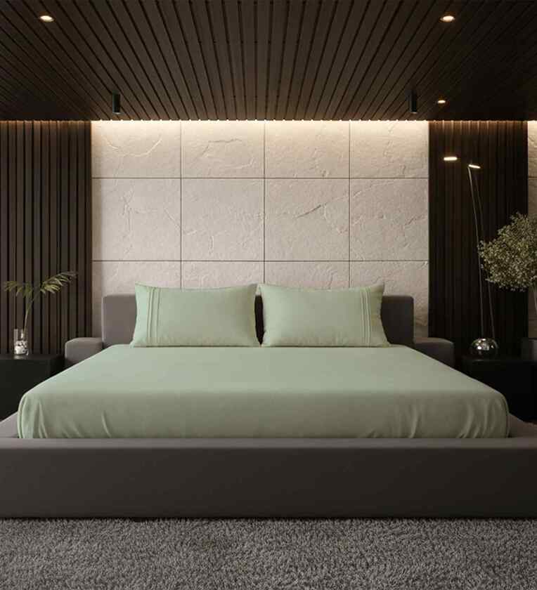 Minted Green Solid 500 TC Pure Cotton King Fitted Bedsheet with 2 Pillow Covers
