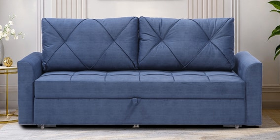 Mira Velvet Fabric Sofa Cum Bed in Midnight Blue Colour With Storage