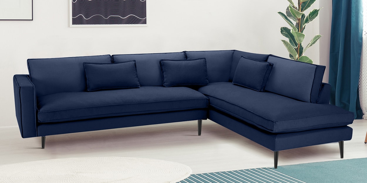 Mireya Fabric LHS Sectional Sofa (3+ Lounger) In Navy Blue Colour
