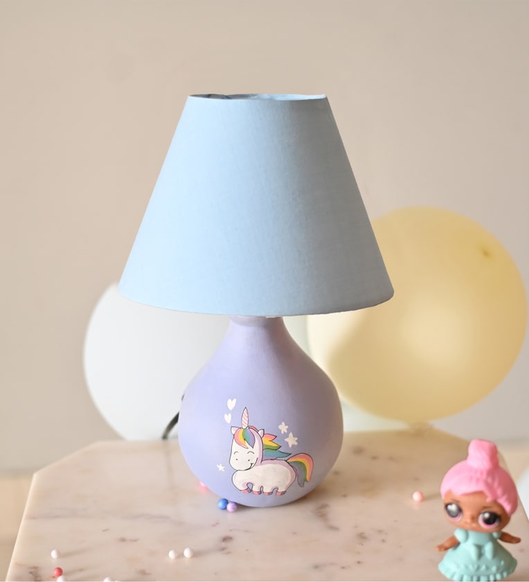 these lamp are spicially designed for kids room. The theme is Unicorn in beautiful pastel shade of pink blue purple. You can choose from the shade color variations. It can be a best gifting for anewly wed couple as well as a baby shower. Its easy to assemble and clean. the paint is water proof. its safe for childerns.