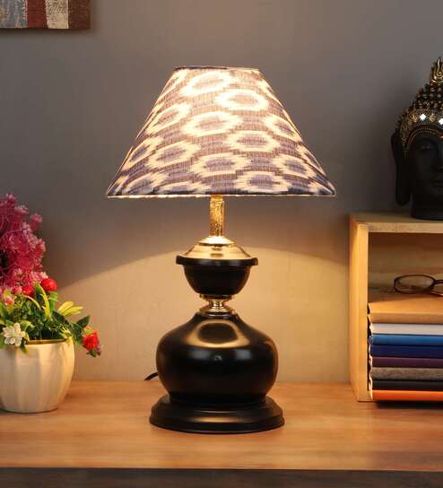 Modern Black Metal Table Lamp with Ikat Print Shade