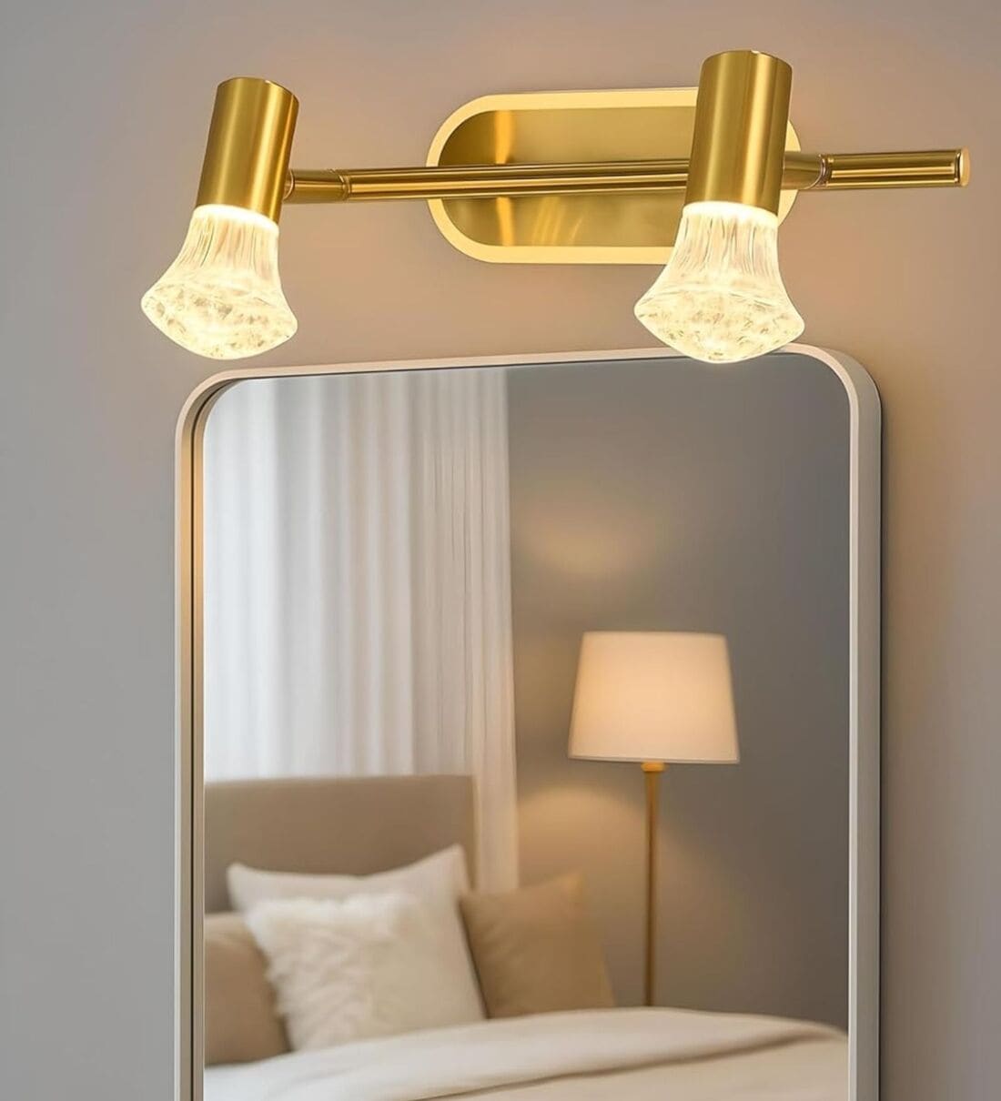 The standout feature is the dual crystal glass shades, which boast a unique, flared bell shape and a beautiful hammered texture. When illuminated, these shades create a warm, shimmering glow that adds depth and elegance to any room