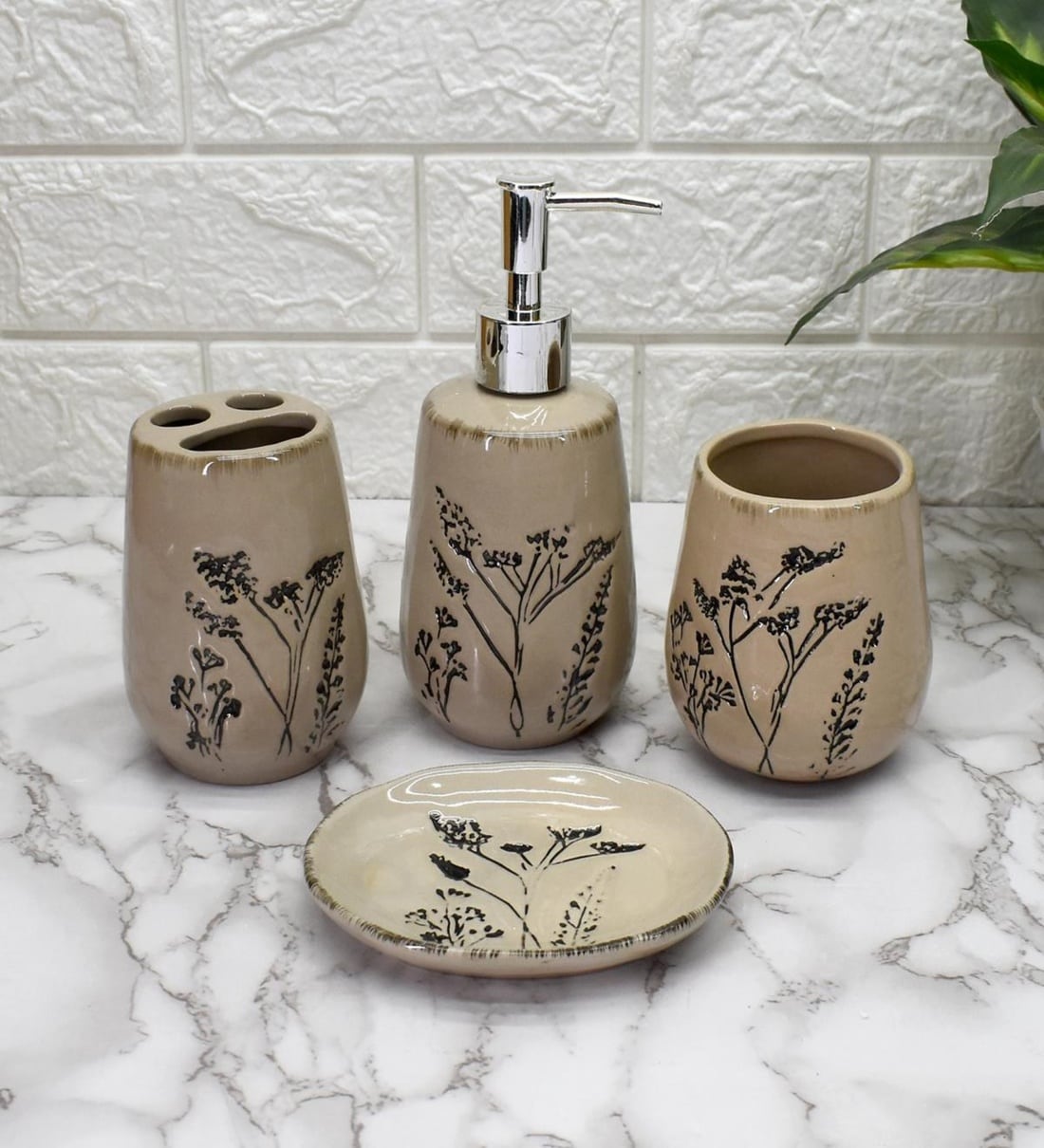 Kookee is a leading brand in Premium Ceramic Bathroom Sets that are exquisite and beautiful, decorate the bathroom and kitchen with good things. Condition: 100% Brand New. Main Material: ceramic. The bathroom accessory set was made by advanced ceramic technology, durable enough. Enjoy your wash experience, don't worry about safety, and use it anywhere you need. The ceramic bath set is designed to fit many decors from farmhouse to industrial loft, rustic to modern. The soap dispenser set for bathroom features a classy timeless design, perfectly matches various bath decors. This bathroom accessories set for home will be an awesome choice for most families. Note: COLOR: The genuine color of the item may be slightly different from the pictures shown due to many factors such as the brightness of the computer screen or the lighting levels.