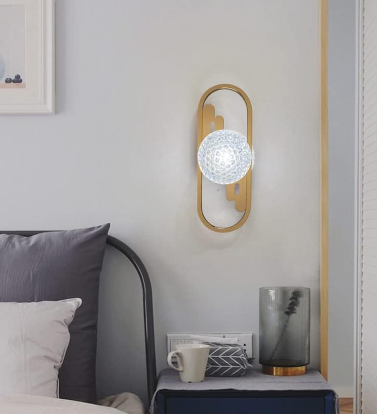 Modern Crystal Globe Wall Light with Gold Frame Elegant Decorative Sconce