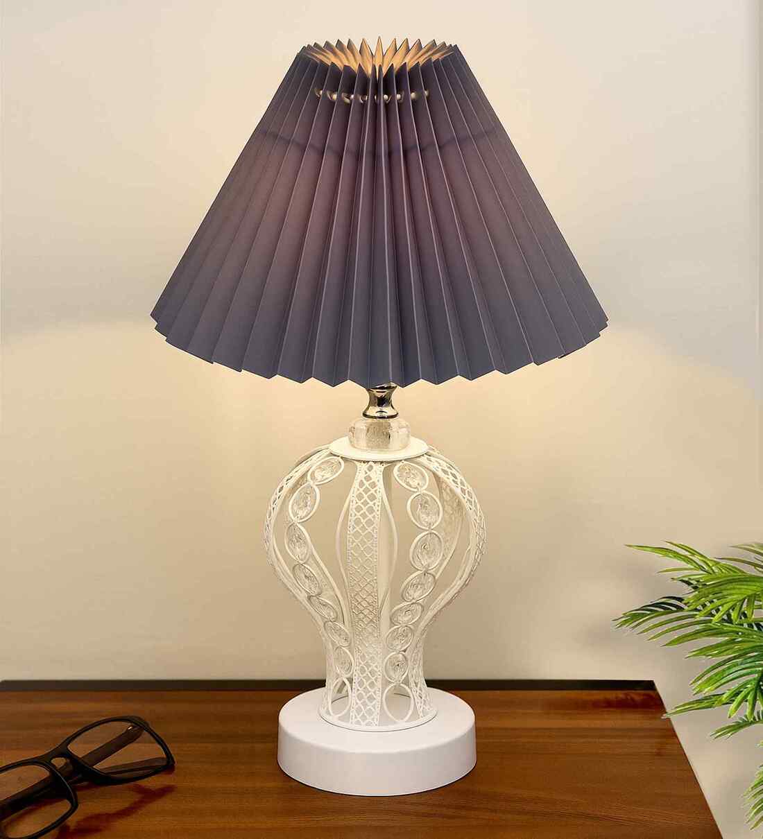 Modern Crystal Round Table Lamp with Grey Pleated Shade