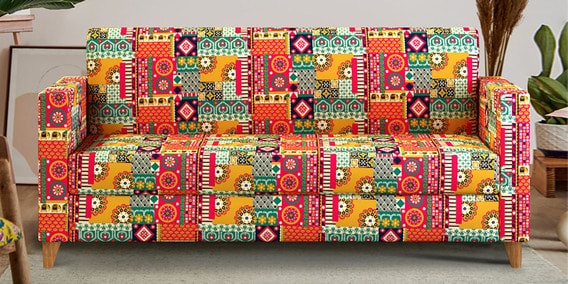 Modern Fabric 3 Seater Sofa in Red Floral Swirls Colour