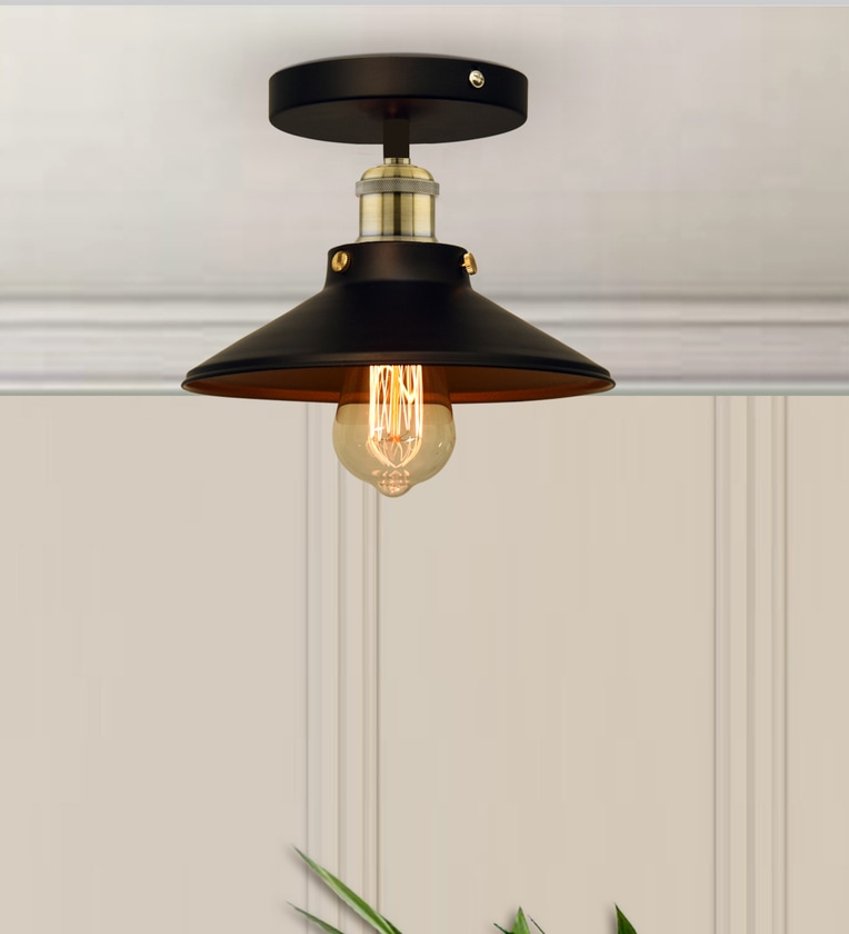 Modern Farmhouse Semi Flush Mount Ceiling Light, Black Hallway Fixture, Antique Golden, Cone